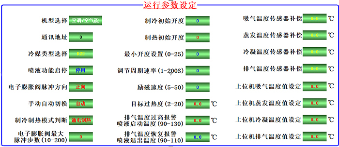 11)、顯示界面上29 路參數(shù)控制參數(shù)設(shè)置/查詢:控制器內(nèi)所有與控制相關(guān)的溫度參數(shù)、時(shí)間參數(shù)、控制參數(shù)、等29個(gè)參數(shù)都可以調(diào)整,以適應(yīng)制冷/熱泵/冷庫(kù)/水機(jī)等設(shè)備。