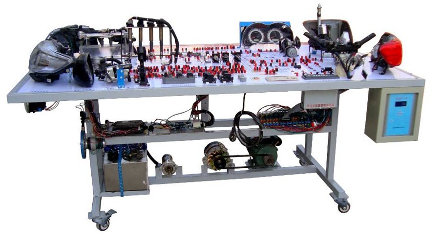 汽車電氣設(shè)備實訓(xùn)室。汽車電器設(shè)備實訓(xùn)室包含有汽車燈光系統(tǒng)、車載網(wǎng)絡(luò)系統(tǒng)、全車電器系統(tǒng)、汽車啟動系統(tǒng)、汽車空調(diào)系統(tǒng)、全車線路試驗臺、等實訓(xùn)教學(xué)設(shè)備。該實訓(xùn)室可以承擔(dān)《汽車構(gòu)造》、《汽車電器設(shè)備》、《汽車電控系統(tǒng)》、《汽車檢測與診斷》等課程的實踐教學(xué)任務(wù)?梢杂糜谘芯俊⒎治鋈囯娖飨到y(tǒng)、燈光系統(tǒng)、儀表系統(tǒng)等電器設(shè)備的電路及功能。利用這些系統(tǒng)進行實踐教學(xué),使學(xué)生熟悉汽車電器的結(jié)構(gòu)和工作原理,掌握各個系統(tǒng)的基本組成電路,掌握主要電路的檢測方法和系統(tǒng)的故障特征,從而具有一定的檢測和調(diào)校能力。