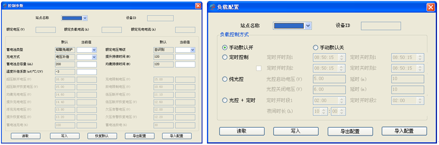 控制參數(shù)界面 負(fù)載配置界面