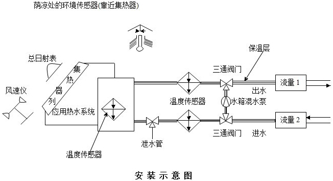 系統(tǒng)執(zhí)行國(guó)標(biāo)GB/T18708 ,GB/T19141,GB/T20095-2006太陽(yáng)熱水系統(tǒng)性能評(píng)定規(guī)范等要求方法測(cè)試(熱性能:日有用得熱量,升溫性能,儲(chǔ)水箱保溫性能等指標(biāo))