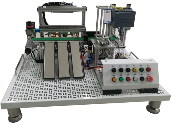 (1)系統(tǒng)包含氣動(dòng)控制、電機(jī)傳動(dòng)、位置控制、傳感器檢測(cè)等內(nèi)容,為實(shí)際工業(yè)現(xiàn)場(chǎng)生產(chǎn)設(shè)備的微縮裝置;诙喾N傳感器的檢測(cè)的精確定位,實(shí)現(xiàn)對(duì)不同材質(zhì)、不同顏色物體的分揀?沙浞皱憻挷僮髡呦到y(tǒng)接線、機(jī)械調(diào)試安裝、軟件編程、獨(dú)立構(gòu)建控制系統(tǒng)、反饋整定、故障檢測(cè)及檢修的能力。配有空氣壓縮機(jī):靜音無(wú)油,工作電源AC220V±10% 50Hz,輸入功率0.68kW;公稱(chēng)容積24L,理論流量:116L/min,額定輸出氣壓0.7MPa。