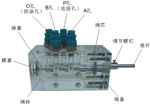 2、彈簧回位油缸的缸體,端蓋等均采用了進口透明有機玻璃材料精制而成,透明清晰,頂桿采用45#中碳鋼材料,并配合油接頭、密封圈、內(nèi)六角螺絲等標準件裝配而成,通過它可明確地觀察到活塞、頂桿、油封、油孔、彈簧等結構及其運行過程,具有形象逼真,性能可靠等腰三角優(yōu)點,它即可作為教學模型,也可作為液壓實驗元件進行實驗演示。