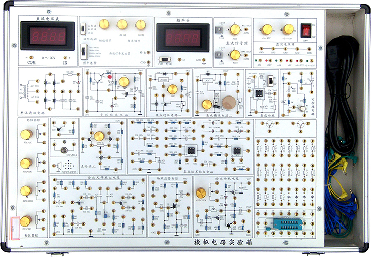 模擬電路實(shí)驗(yàn)箱是根據(jù)《高等工業(yè)學(xué)校電子技術(shù)基礎(chǔ)》教學(xué)大綱中確定的教學(xué)實(shí)驗(yàn)要求為基礎(chǔ),汲取了眾多專業(yè)教師的教學(xué)經(jīng)驗(yàn),并綜合了眾多同類產(chǎn)品的優(yōu)點(diǎn)而設(shè)計(jì)的。它函蓋了《模擬電子技術(shù)基礎(chǔ)》課程全部實(shí)驗(yàn)內(nèi)容,既為初學(xué)者提供了驗(yàn)證性實(shí)驗(yàn)電路,又為課程設(shè)計(jì)提供了擴(kuò)展平臺(tái)。