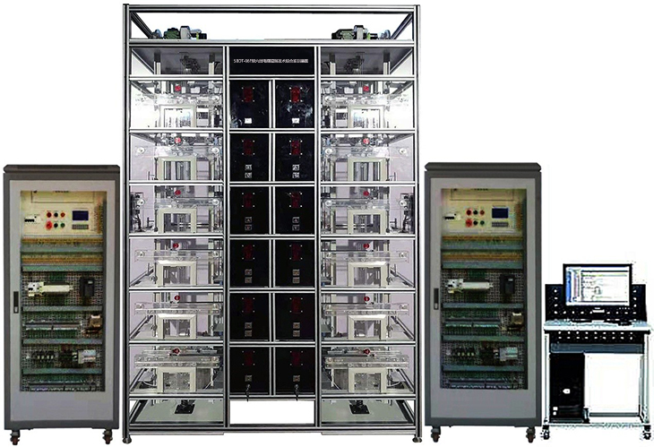 電梯控制技術(shù)綜合實(shí)訓(xùn)裝置是專門為職業(yè)院校開設(shè)的電氣自動(dòng)化、機(jī)電一體化、機(jī)械制造與自動(dòng)化等相關(guān)專業(yè)而研制的,裝置根據(jù)智能建筑中升降電梯的機(jī)構(gòu)按照一定的比例縮小設(shè)計(jì),所用設(shè)備、器件與實(shí)際電梯基本一致,采用槽鋼方管框架結(jié)構(gòu)整體設(shè)計(jì),正面使用透明有機(jī)玻璃面板,融低壓電氣、PLC、變頻調(diào)速、智能人機(jī)、傳感檢測(cè)、視頻監(jiān)控、智能考核系統(tǒng)等于一體,實(shí)現(xiàn)智能電梯復(fù)雜的開關(guān)量控制、時(shí)序邏輯控制。通過(guò)該裝置的操作訓(xùn)練可考核學(xué)生掌握智能電梯的裝調(diào)與維護(hù)綜合能力,如電梯呼梯盒的安裝、井道信息系統(tǒng)的安裝、平層開關(guān)檢測(cè)位置調(diào)整、門機(jī)機(jī)構(gòu)調(diào)整、電氣控制柜的器件安裝、接線、變頻器參數(shù)設(shè)置、PLC編程與調(diào)試、電梯群控功能調(diào)試、電梯故障排除、運(yùn)行維護(hù)等,除了滿足專業(yè)實(shí)訓(xùn)教學(xué),還能開展技能考核以及職業(yè)技能競(jìng)賽。