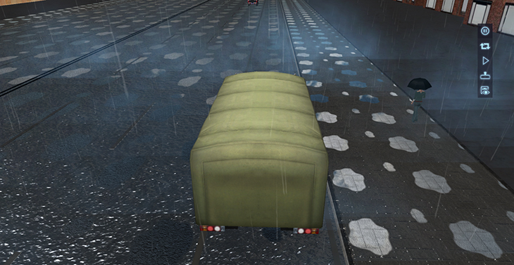 7.6、場(chǎng)景天氣類(lèi)型具有:晴天、陰天、雨天、雪天、霧天、夜晚等模塊,不同天氣有不同場(chǎng)景效果,同時(shí)路面有不同的屬性。道路上的行人密度、車(chē)輛密度可調(diào)節(jié).