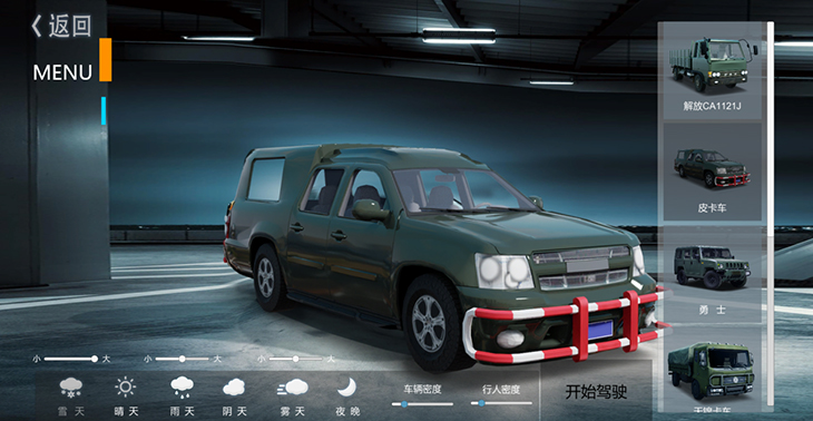 圖二十:天氣、車(chē)輛、行人自由切換功能界面