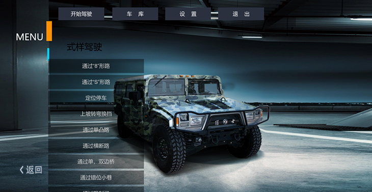 2)場(chǎng)地駕駛(定位停車(chē)、坡道起步、上坡轉(zhuǎn)彎換擋、通過(guò)單凸路、通過(guò)單雙邊橋、通過(guò)圓形錯(cuò)位障礙、通過(guò)錯(cuò)位小巷、通過(guò)限制門(mén)、上坡轉(zhuǎn)彎減檔)
