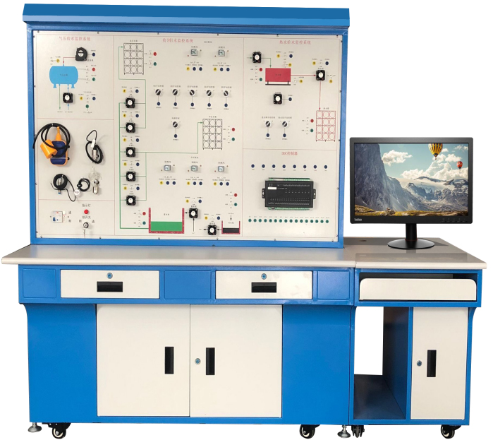 控制器的操作與編程、給水控制、排水控制、氣壓給水控制、熱水供水控制、水位傳感器的安裝與連接,系統(tǒng)軟件的組態(tài)、配置與控制,線路的設(shè)計與連接、故障的設(shè)置、判斷及排除等實驗和實訓(xùn),并可與樓宇自控系列中的其它設(shè)備聯(lián)網(wǎng)進(jìn)行各種綜合實訓(xùn)。