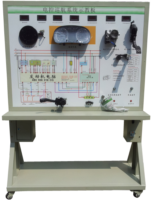 2.示教板面板采用4mm厚耐腐蝕、耐創(chuàng)擊、耐污染、防火、防潮的高級(jí)鋁塑板,表面經(jīng)特殊工藝噴涂底漆處理;面板打印有永不褪色的彩色電路圖;學(xué)員可直觀對(duì)照電路圖和實(shí)物,認(rèn)識(shí)和分析汽車電子巡航系統(tǒng)的工作原理。