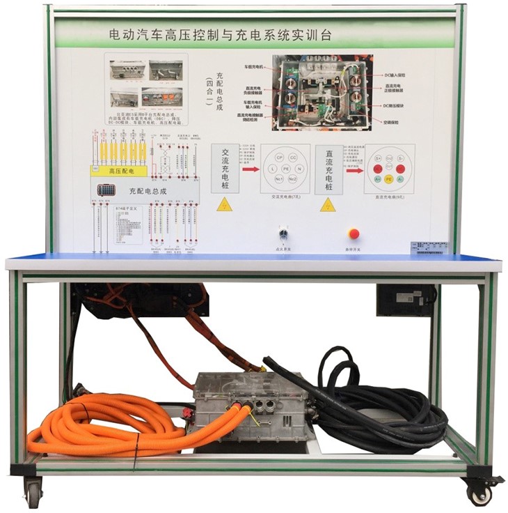 采用真實的純電動汽車高壓充配電箱總成實物部件為基礎進行制作,通過透明蓋板可以觀察高壓充配電箱的電氣元件組成,能夠模擬高壓充配電箱的控制工作狀態(tài),真實展示純電動汽車高壓充配電箱的組成結(jié)構(gòu)和工作原理。適用于中高等職業(yè)技術(shù)院校、普通教育類學院和培訓機構(gòu)對純電動汽車高壓充配電系統(tǒng)控制系統(tǒng)原理的教學。