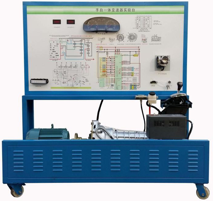該設(shè)備采用 翻新 大眾帕薩特01V電控自動(dòng)變速器總成為基礎(chǔ),可調(diào)速三相異步電動(dòng)機(jī)做動(dòng)力源,對(duì)自動(dòng)變速器進(jìn)行檔位顯示、空檔起動(dòng)、前進(jìn)檔及倒檔運(yùn)行等工況實(shí)踐操作。真實(shí)展示電控自動(dòng)變速器組成結(jié)構(gòu)和工作過(guò)程。