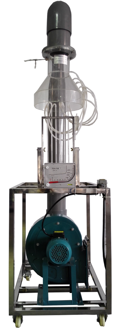 局部抽吸排風(fēng)罩、畢托管、壓差計(jì)、低噪音多翼風(fēng)機(jī)、管路、斜管微壓計(jì)、調(diào)節(jié)風(fēng)門、高度尺、不銹鋼實(shí)驗(yàn)臺架。