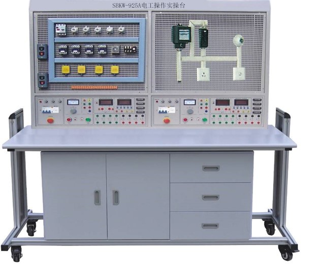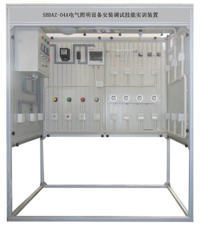 電氣安裝與維修實(shí)訓(xùn)考核裝置是根據(jù)工廠電氣安裝和室內(nèi)電氣安裝等維修 電工和電氣安裝工實(shí)訓(xùn)鑒定要求開(kāi)發(fā)的一種通用實(shí)訓(xùn)平臺(tái)。 適合于各類職業(yè)院校 和技工學(xué)校維修電工、 電氣安裝工、水電工等有電氣實(shí)訓(xùn)要求的相關(guān)專業(yè)的作為 公共實(shí)訓(xùn)平臺(tái)使用。 采用鋼制網(wǎng)孔板和鋼制專用型材組接而成,安裝有自鎖式腳輪,方便移動(dòng)和使用。裝 置表面噴塑,色彩穩(wěn)重氣派。電氣安裝與維修實(shí)訓(xùn)裝置設(shè)計(jì)高度以人站在一級(jí)人字梯即可方便操作的高度,既安 全又能使使用者感受到施工現(xiàn)場(chǎng)環(huán)境。 橫向、 叢向?qū)挾群线m, 可以模擬現(xiàn)場(chǎng)線路的轉(zhuǎn)向布置。