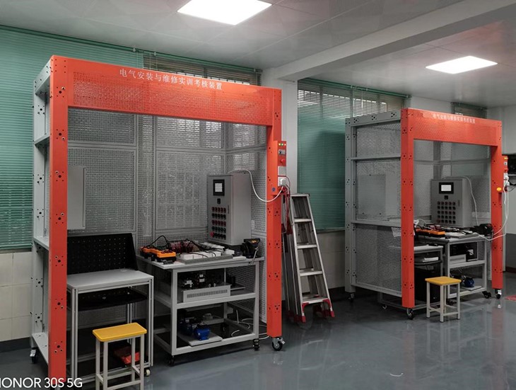 中級(jí)維修電工實(shí)訓(xùn)室有中級(jí)維修電工實(shí)訓(xùn)臺(tái),面向電氣自動(dòng)化技術(shù)、應(yīng)用電子技術(shù)、機(jī)電一體化技術(shù)等專業(yè),可以進(jìn)行工廠電氣控制設(shè)備技能訓(xùn)練、機(jī)床電路、電氣控制與PLC技能訓(xùn)練等項(xiàng)目的實(shí)訓(xùn)教學(xué),并可以進(jìn)行中級(jí)維修電工技能鑒定工作。