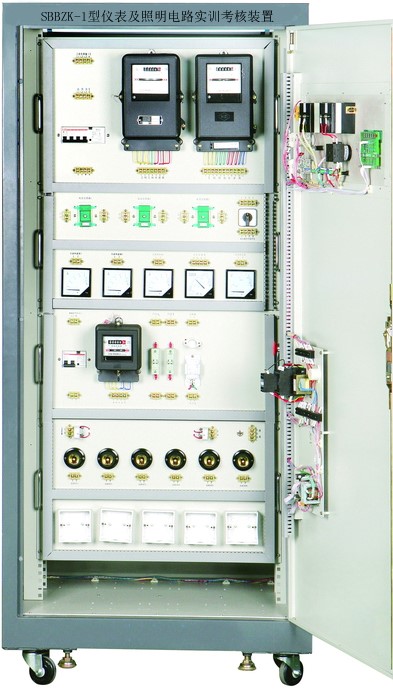 儀表及照明電路實訓(xùn)考核設(shè)備是按照勞動和社會保障部頒發(fā)的"工人等級標準"和"職業(yè)技能鑒定"規(guī)范要求而設(shè)計的,它集培訓(xùn)、理論、實際操作和考核鑒定為一體的多功能設(shè)備。該裝置采用實際應(yīng)用的配電柜為主體,合理利用柜體的雙面空間,進行合理布局,配置可靠的元器件。它既可用于對電工儀表和照明電路的操作實訓(xùn)。也可作為初、中、高級電工技能考核設(shè)備。