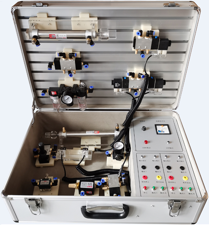氣動液壓綜合實驗臺面向機電一體化、機械制造及自動化、機電一體化、電氣自動化等自動化類專業(yè)學生的《液壓與氣動技術(shù)》課程的教學與實訓、同時提供面向企業(yè)的氣動技術(shù)項目培訓。該裝置集理論實踐于一體,在產(chǎn)品結(jié)構(gòu)上由空壓機、實訓臺、氣動元件、電氣元件組成,涵蓋氣動基本的執(zhí)行元件、氣閥元件及基本的氣動搭接回路實訓的內(nèi)容,可使學生了解和掌握氣動元件的選型、應(yīng)用、設(shè)定、調(diào)節(jié),氣動基本回路的原理。幫助學生提高學習氣動基礎(chǔ)知識的興趣,方便教師課堂教學,增加專業(yè)特色。實訓室主要實訓項目:氣動基本回路實驗實訓、繼電器控制的氣動系統(tǒng)實驗實訓、可編程序控制器(PLC)電氣控制實驗實訓、機-電-氣一體化控制實驗實訓、氣動系統(tǒng)創(chuàng)新設(shè)計組裝實訓。 通過實驗實訓,讓學生更好地理解和掌握氣壓件結(jié)構(gòu)、形狀、作用和工作原理方面的知識,掌握常用的氣動回路作用、工作原理和使安裝調(diào)試方法,理論結(jié)合實際,提高動手能力,為將來從事與自動化專業(yè)相關(guān)的設(shè)計、制造、維修等工作打下良好的基礎(chǔ)。上海碩博弘揚大國工匠精神, 發(fā)展職業(yè)教育,應(yīng)用教學設(shè)備,為企業(yè)培養(yǎng)高技能人才,液壓實驗臺是以高?蒲谐晒a(chǎn)業(yè)化為背景,由教授、高級工程技術(shù)人員、高級管理人員為主體組成的,集研發(fā)、生產(chǎn)銷售于一體的企業(yè),專業(yè)提供液壓試驗臺,氣動實驗臺,液壓拆裝實訓設(shè)備,氣動液壓綜合實驗臺。 液壓PLC控制實訓裝置(工業(yè)型)、液壓元件拆裝實訓裝置、透明液壓與氣動PLC控制綜合實訓裝置、透明液壓與氣動PLC控制綜合實訓裝置(組態(tài)軟件控制)、透明液壓PLC控制實訓裝置(外帶泵站)、透明液壓PLC控制實訓裝置(內(nèi)帶泵站)、透明液壓傳動PLC實訓裝置(外帶泵站、組態(tài)軟件控制)、透明液壓傳動PLC實訓裝置(內(nèi)帶泵站、組態(tài)軟件控制)、透明液壓PLC控制實訓裝置(挖掘機實訓臺)、透明液壓傳動演示系統(tǒng)、四合一透明液壓傳動演示系統(tǒng)、氣動PLC控制實訓裝置、氣動PLC控制實訓裝置(組態(tài)軟件控制)、液壓與氣動PLC控制綜合實訓裝置(工業(yè)型)、液壓與氣動PLC控制綜合實訓裝置(工業(yè)型組態(tài)軟件控制)、液壓PLC控制實訓裝置(工業(yè)型)、液壓PLC控制實訓裝置(工業(yè)型帶組態(tài)軟件控制)、液壓挖掘機PLC控制實訓裝置(工業(yè)型)、液壓起重機PLC控制實訓裝置(工業(yè)型)。